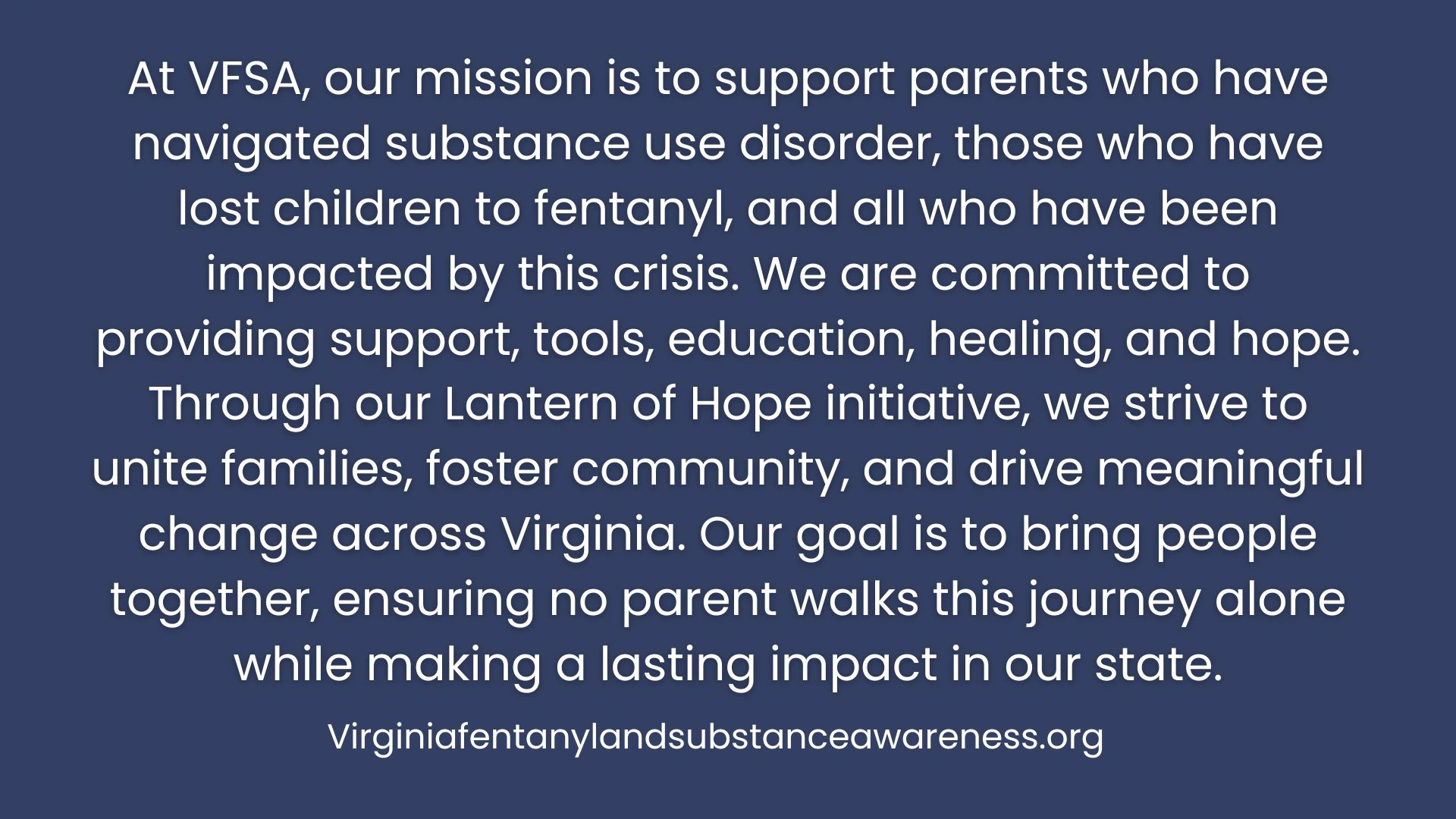 That support circle grew into something much larger—a movement. It laid the foundation for what is now Virginia Fentanyl and Substance Awareness (VFSA). Driven by her personal journey and a mission to ensure no parent feels alone, Karleen built VFSA to be a voice, a resource, and a source of hope for families across Virginia impacted by substance use and mental health struggles.
